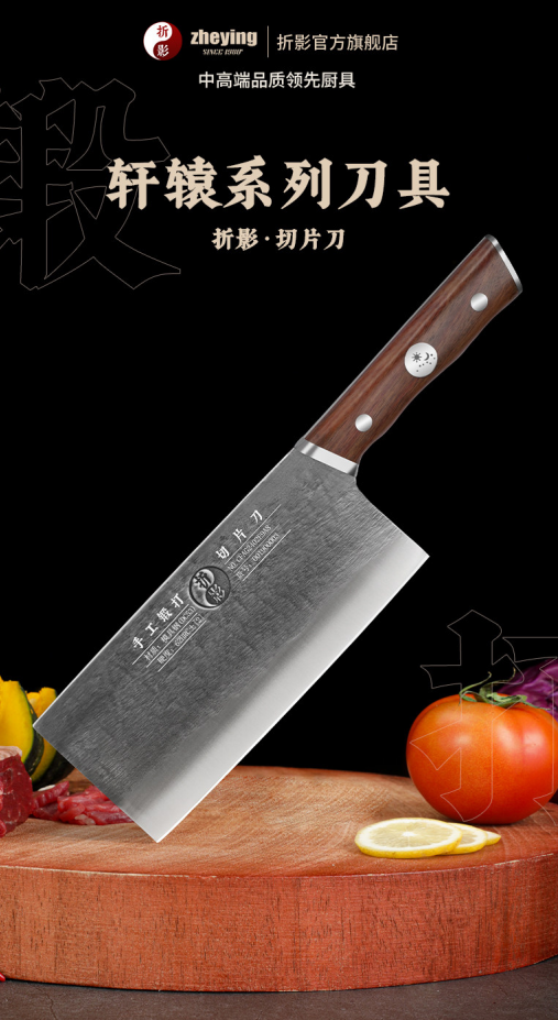 盘点刀具品牌推荐,还有折影轩辕。其采用高硬度的DC53模具钢,并运用传统的蛤式开刃手工技艺,旨在实现更小的切割阻力。然而,其钢材在韧性及抗腐蚀能力的综合表现上,与专用厨刀钢材存在差距。