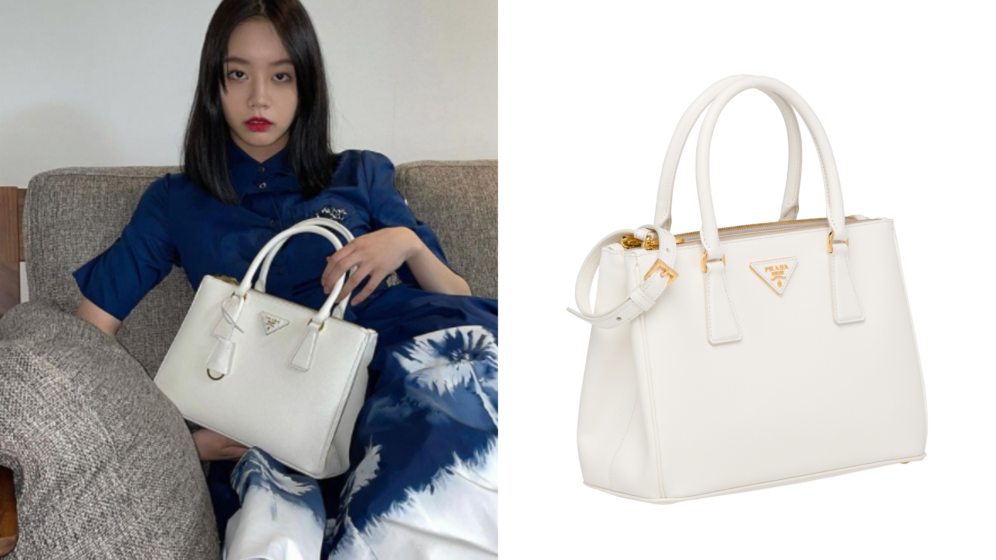 先前女星们一窝蜂带货抢背的时候,惠利也是其中一个,PRADA Galleria经典丽仕包由防刮、耐磨又能防泼水的Saffiano皮革制作而成,俐落包型从不退流行,底部的钉扣还能防止弄脏,特别适合想尝试白色手袋、又怕难照顾的人。