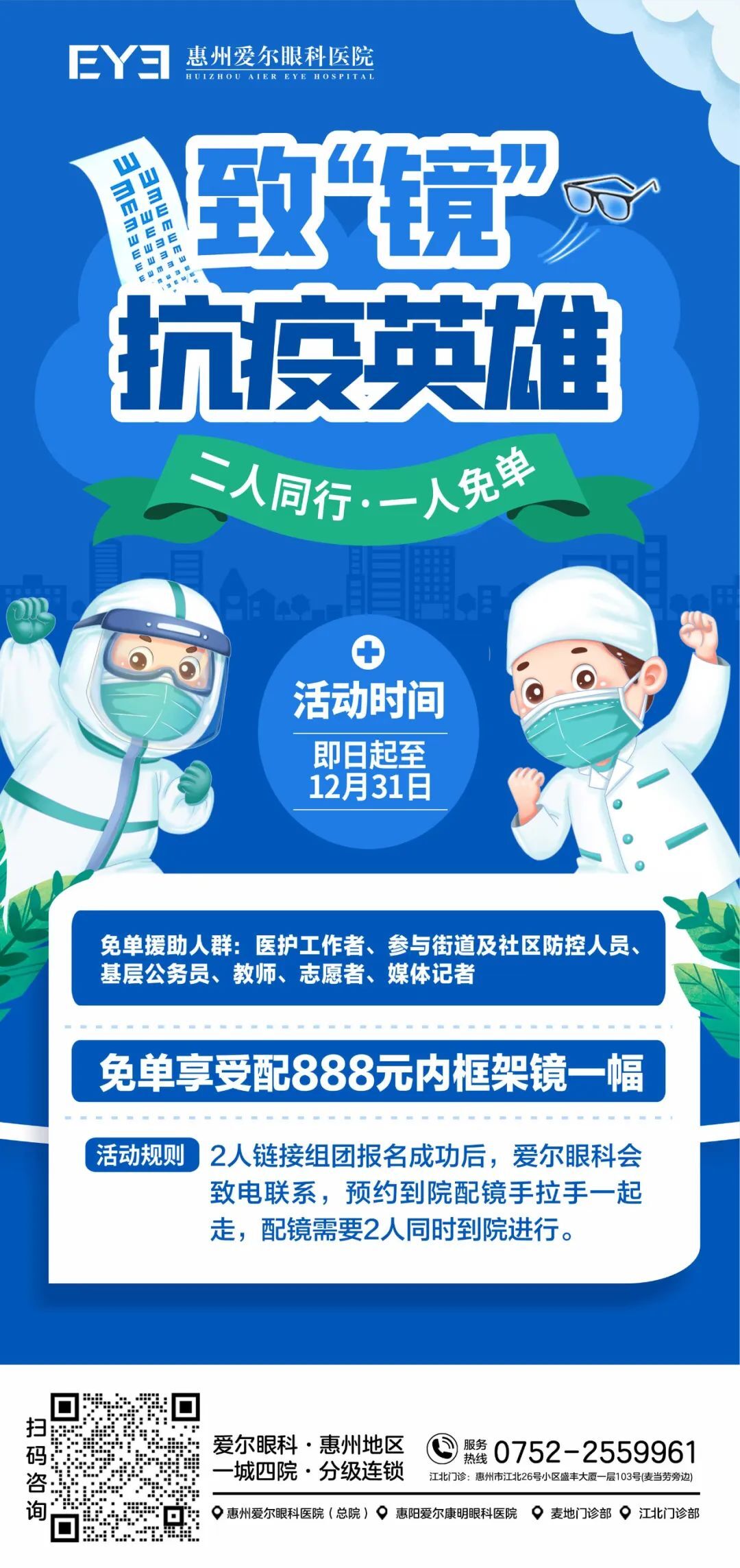惠州人注意! 配镜2人同行,1人免单 ,两幅眼镜只需一份钱!