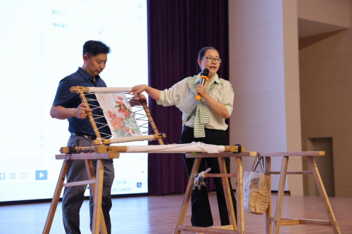 图:老师现场演示广绣技艺