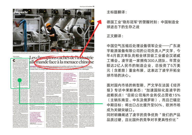 在今年4月刚落幕的德国汉诺威工业博览会上,我司严总作为企业负责人,接受了法国知名经济报纸的专访,向国际市场展现了凌宇的实力与雄心。