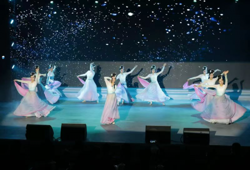 ”舞动恒舞“舞蹈团的学生表演舞蹈《芙蓉似锦满城花》